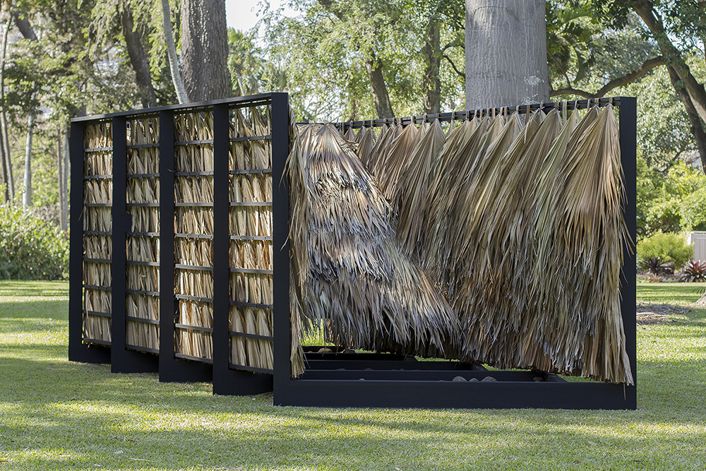 An outdoor sculptural assembly combining thatch and stone to engage Indigenous building logics. Weight, balance, and assembly are treated as cultural techniques rather than stylistic gestures, with the garden acting as site and collaborator. The work extends Connelly’s interest in material systems and land-based making, where construction becomes a way to think with place. Curated by Fumio Nanjo and Ngahiraka Mason.