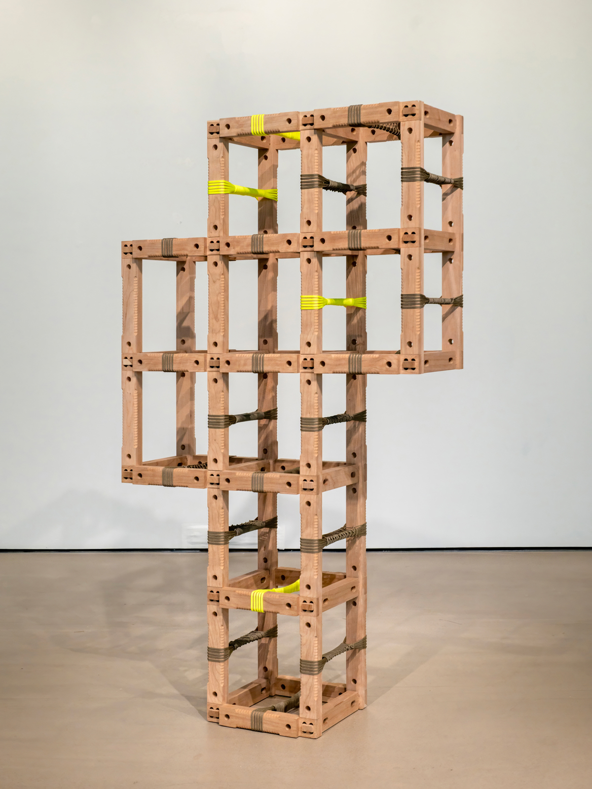 A sculptural and spatial study of modular building systems using a sixteen-cube truss as a generative structure. Repetition, load, and assembly operate as architectural and cultural logics, treating structure as a thinking tool. The work extends Connelly’s practice of translating spatial systems into visual form, bridging material intelligence, mapping, and institutional critique. Installed in collaboration with Aniku Romero Kupihea and Ian Eichelberger.